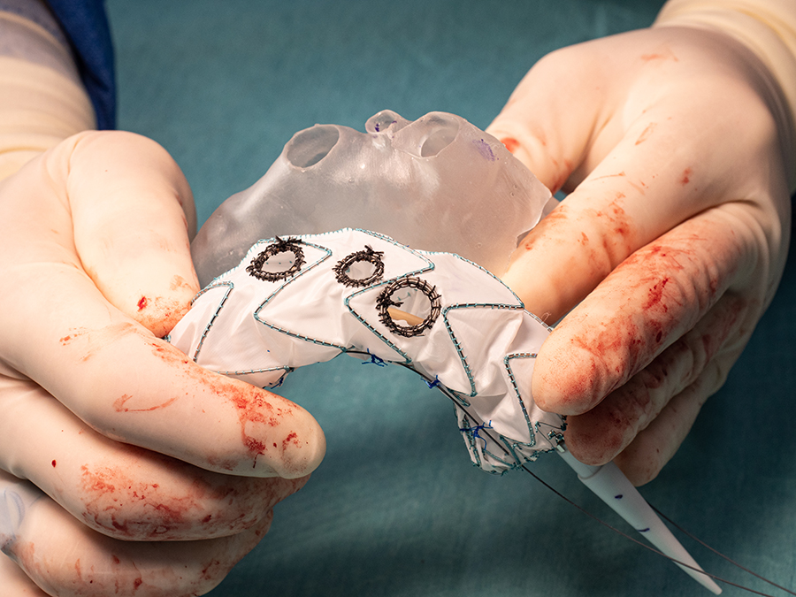 Po wydrukowaniu model 3D jest sterylizowany i trafia na blok operacyjny. Tam wkładana jest do niego proteza (stent-graft), a model 3D pełni rolą szablonu. Następnie na protezie robione są otwory na odchodzące od aorty gałęzie, według zaplanowanych miejsc. Dzięki temu, że materiał, z którego wydrukowano szablon jest przezroczysty (żywica Clear), chirurgom łatwiej jest umieścić protezę wewnątrz repliki aorty. Można więc dokładniej wybrać pozycję dla otworów pomiędzy rusztowaniem protezy (pomiędzy stentami).