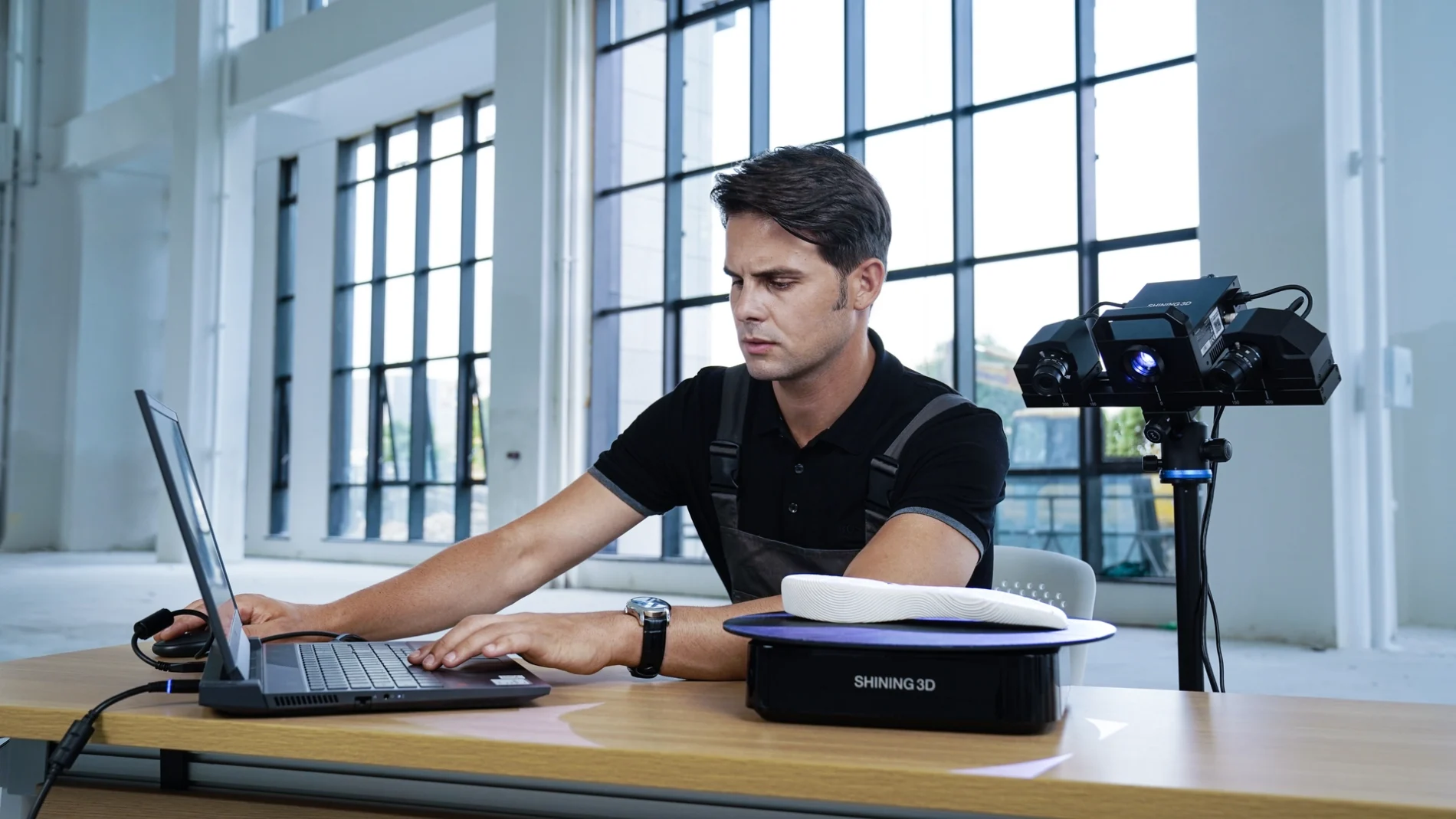 Dzięki zastosowaniu stolika obrotowego proces skanowania jest bardzo intuicyjny oraz w pełni zautomatyzowany. W połączeniu z algorytmami łączenia kolejnych skanów do siebie oprogramowanie zapewnia wydajne pozyskiwanie danych 3D bez ingerencji operatora.